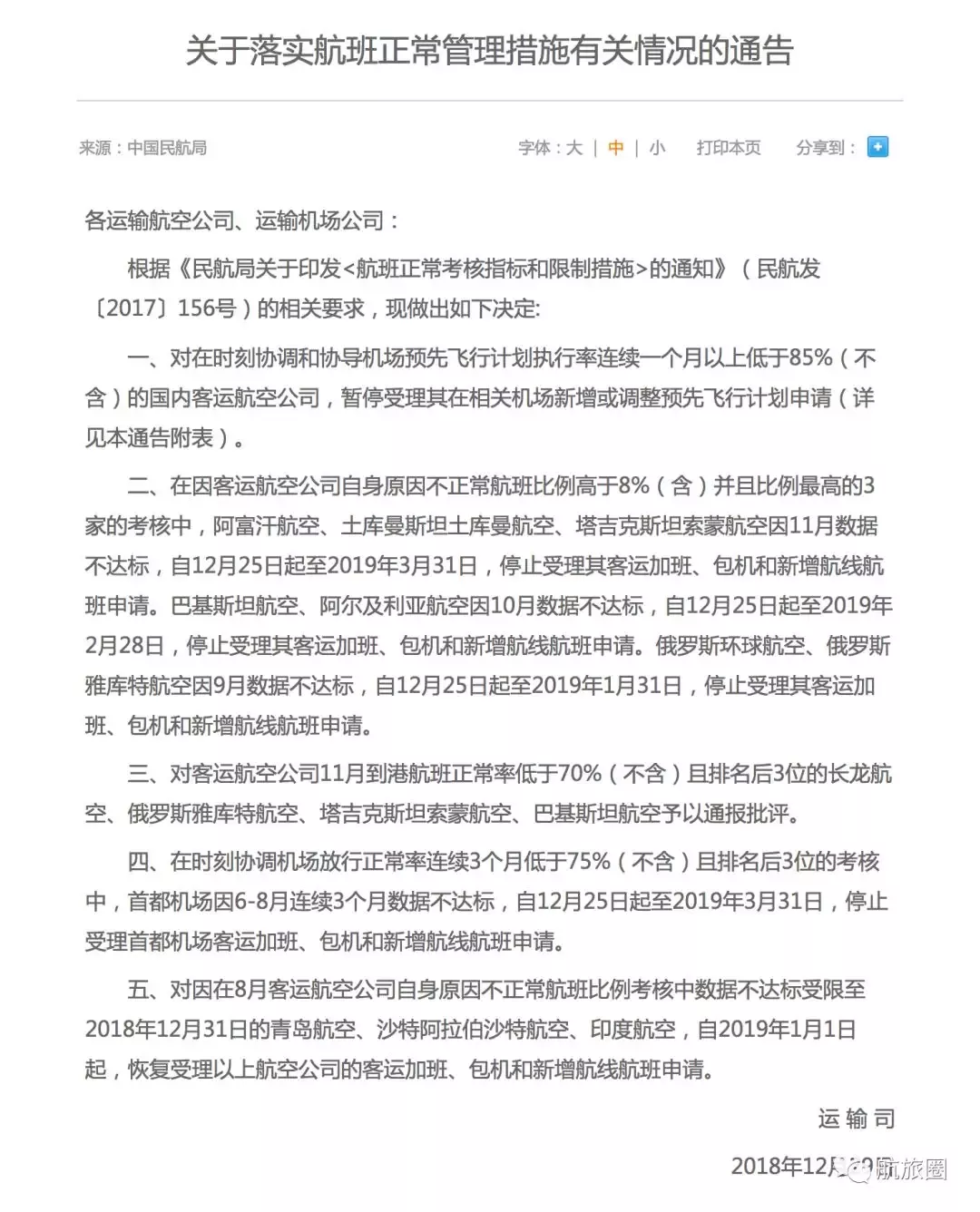 首都機場在時刻協調機場放行正常率連續3個月低於75%(不含)且排名後3位的考核中,6-8月連續3個月數據不達標,自12月25日起至2019年3月31日,被停止受理客運加班、包機和新增航線航班申請。此外,多家外航因正常率數據不達標被關“小黑屋”。