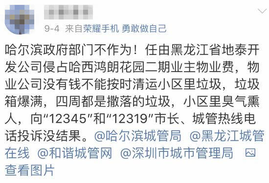 網友在微博上求助時,也把“和諧城管網”當成了官方號……