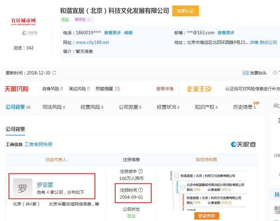 而天眼查的資料顯示,和諧宜居的法定代表人正是前文提到的羅亞蒙。