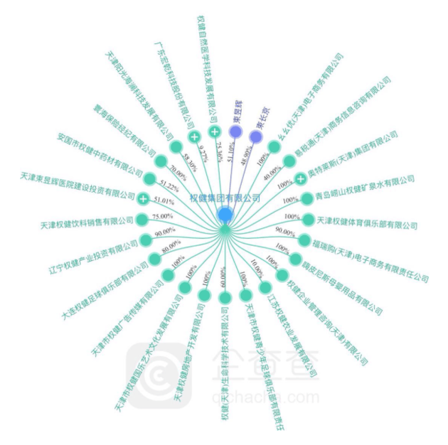 該公司官網介紹稱,權健集團始於2004年,橫跨醫療行業、中草藥行業、保健品行業、中醫藥化妝品行業、金融行業、機械行業、體育行業等諸多領域,註冊資本40080萬元人民幣,股東束昱輝持股比例51.10%,實繳出資額20480萬元。束長京持股48.9%,實繳出資額19600萬元。