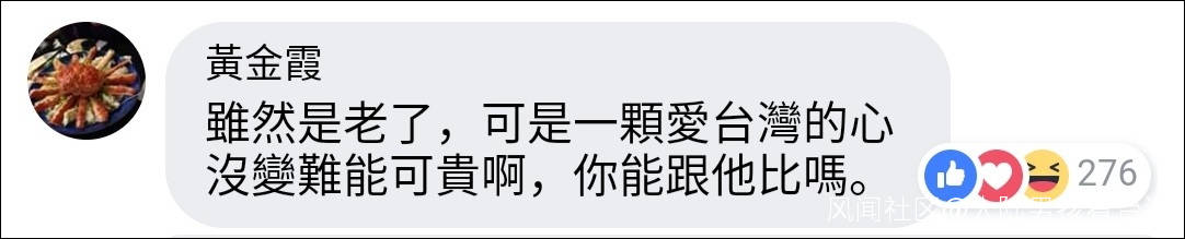 有網友就是這麼看的:雖然是老了,可是一顆愛台灣的心沒變,難能可貴啊,你能跟他(辜)比嗎?
