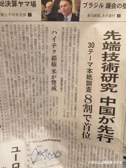 在2018年最後一天,【日本經濟新聞】的頭條“先進技術研究,中國走在前面”_風聞