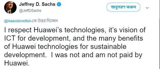 但薩克斯可沒有這麼卑鄙。他理性地對這番人身攻擊做出了回應,表示他是真心尊重和認可華為才寫這篇文章,並不是拿錢寫稿。