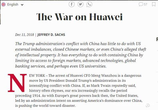 而薩克斯則乾脆動筆寫了一篇名為“反華為的戰爭”的文章,斥責美國政府直接抓人的行為與維護法律毫無關係,真正的目的是保護美國的落後企業和玩兒地緣政治,更是對國際法治乃至全球和平的最大威脅。