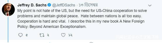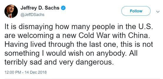 結果,在這種騷擾持續了多天後,這些反華勢力突然發現薩克斯的賬號不見了。可這些平時嚷嚷着“尊重言論自由”的反華分子,並沒有為一個知名經濟學家被騷擾得無法説話甚至賬號消失而不安,反而是立刻“興奮”地宣佈了“勝利”。