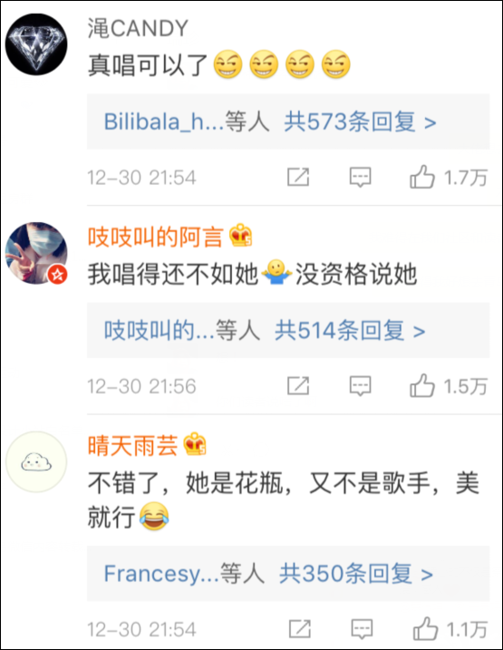 説實話,我一開始以為這是故意有人在“引戰”,沒想到還就真是她的炒作手段,服氣了……你説捧人就捧人唄,紅了之後稍微上點心,完善一下自己的業務水平這個要求不過分吧……