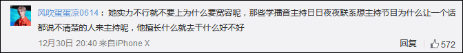 她實力不行就不要上為什麼要寬容呢,那些學播音主持日日夜夜練習,想主持節目,為什麼讓一個話都説不清楚的人來主持呢,他擅長什麼就去幹什麼好不好