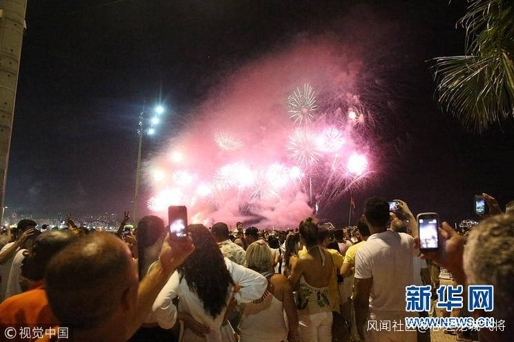 資料圖:當地時間2018年1月1日,巴西里約熱內盧,人們看煙火迎接新年。(圖片來源:視覺中國)
