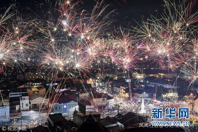 資料圖:當地時間2018年1月1日,印尼日惹,民眾慶祝新年到來。(圖片來源:視覺中國)