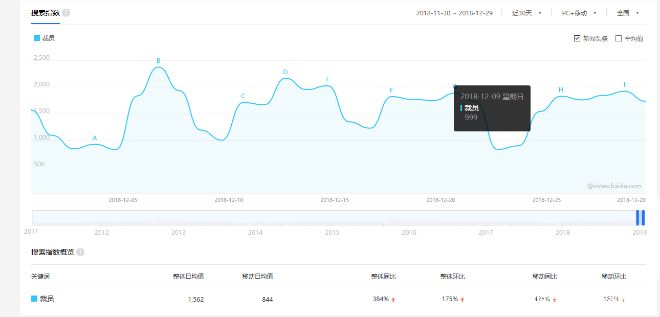 (2018年 “裁員” 關鍵詞 百度指數)