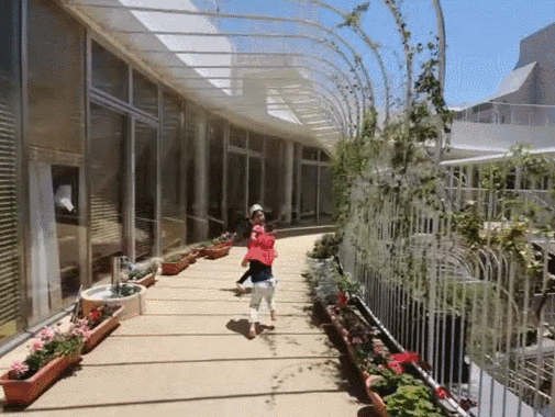 幾個孩子同時在迴廊上追逐玩鬧