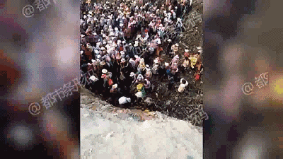 2月20日,湖北武漢,數十萬市民冒雨前往漢陽歸元寺燒香拜財神。在寺廟內的財神殿前,前來維持秩秩序的十多名武警戰士,面對近在咫尺、下雨般越過頭頂飛進財神殿的硬幣,及飛舞的紙幣,戰士們不得不戴上防暴頭盔以防被砸傷。