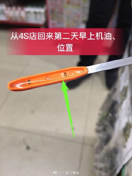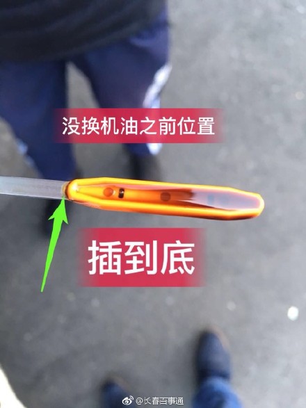 一名自稱來自湖南的車友對車輛機油檢測,先是發現機油液位超出上限值,並且已超出整個橙色的塑料檢測,抽取了部分機油後,機油值才回落至正常水平,位於上下界限值之間。