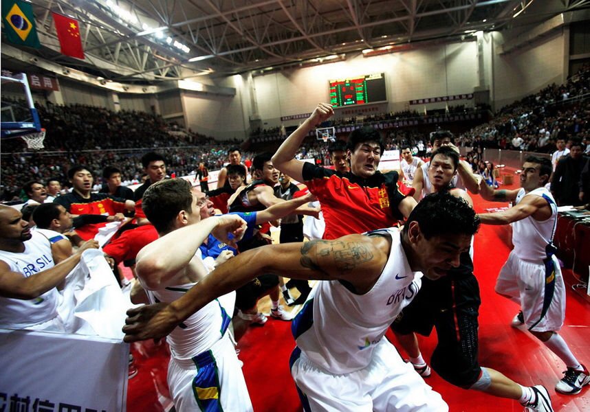 此時,中國隊與波多黎各隊的替補隊員全部衝到場內,雙方大打出手,最終在姚明和雙方工作人員的勸阻下,事態才得以平息。