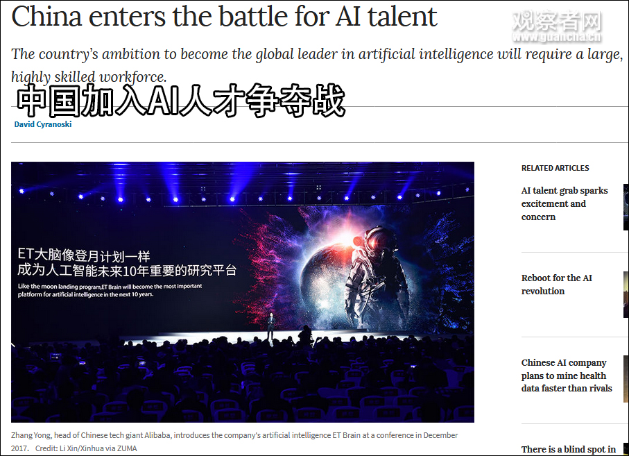 《自然》雜誌:中國加入AI人才爭奪戰,但仍缺乏創新