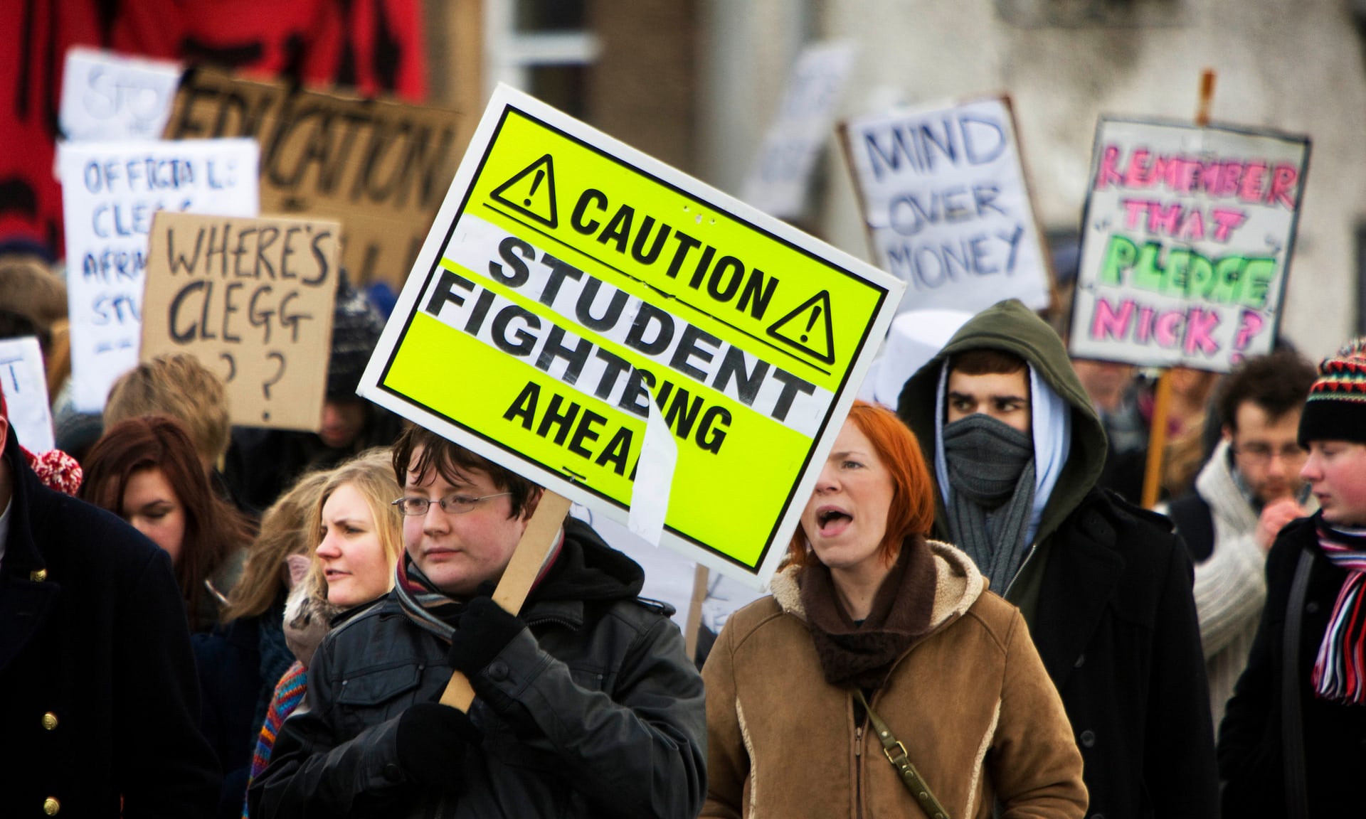 英國學生抗議政府縮減對學校的補助。(圖源:英國《衞報》)