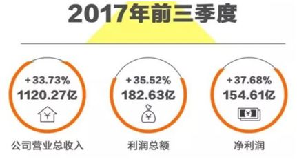 下圖是家用電器的格力電器財報,2017年前三季度1120.27億元,淨利潤154.51億元,淨利潤率13.8%