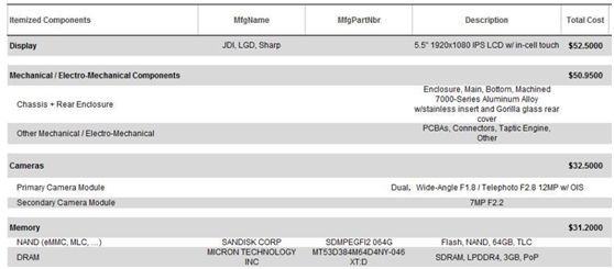 以2017年9月IHS Markit出具的詳細物料成本報告,