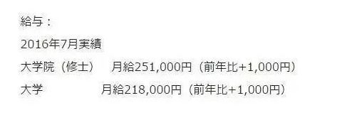 下圖是2016年日本索尼公司給碩士應屆生的工資為25.1萬日元(約14600元人民幣),本科生21.8萬日元(約合12670元人民幣)