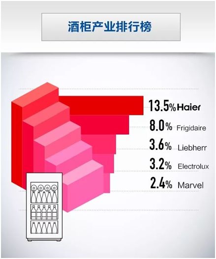 再比如白色家電裏面,在家裏用的酒櫃,這是通常中產階級或者有錢人家裏才會有的家電設備,世界前五位,除了中國海爾位列世界第一外,其他四家都是歐美公司。這是不折不扣的高端享受電子產品。
