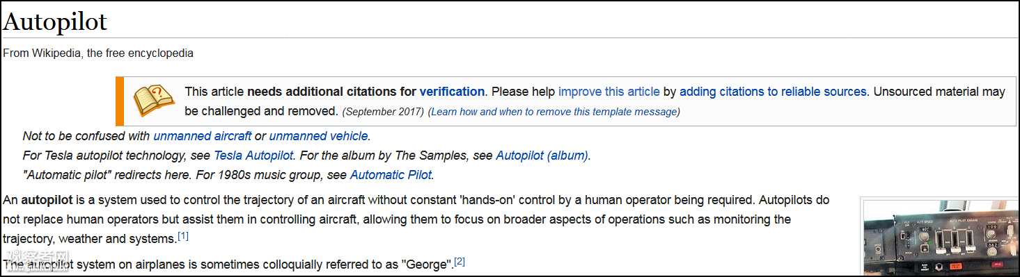 觀察者網查詢發現,在維基百科中,Autopilot是一個用來控制載具軌道而無須人工一直干預的系統。這個詞來源於飛機、列車、輪船領域的輔助駕駛系統。