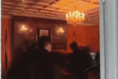 最後幾個“憲兵”在門口舉起雙手,阻擋外面的人進入及拍攝相關畫面。