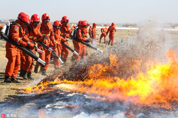 2017年4月16日,呼倫貝爾市軍民聯合在鄂温克族自治旗巴彥塔拉鄉地區,舉行草原防火演練 @東方IC