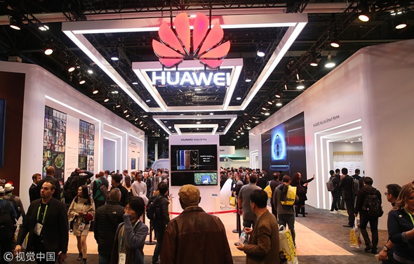 當地時間2018年1月9日,美國拉斯維加斯,CES展內華為公司展區。(@視覺中國)