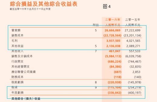 第137頁(圖4)的數據顯示,營業額266.7億(沒有包括上海家樂福,筆者注),銷售成本227.3億,毛利39.4億,“其他收益”為21.4億,虧損3.36億。