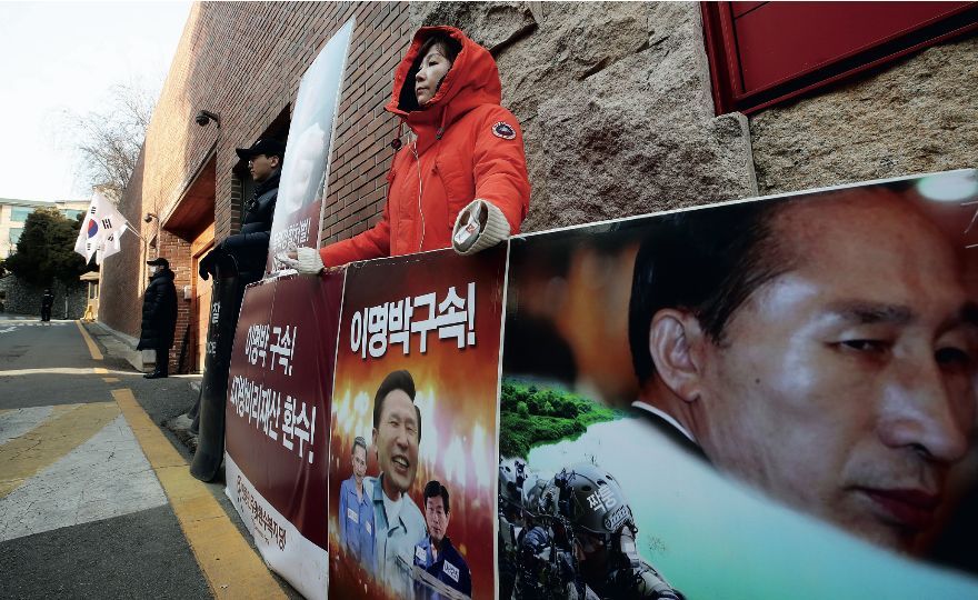 韓國主流民意站在文在寅政府一邊。韓國社會輿論研究所2月發佈的民意調查顯示,四分之三的受訪者支持調查和拘捕李明博。即使在保守傾向的民眾中,半數以上支持對李明博的調查。