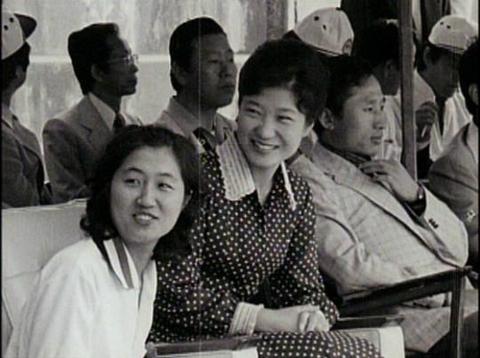 1979年,27歲的朴槿惠、23歲的崔順實與38歲的李明博在首爾漢陽大學(圖源:社交媒體截圖)