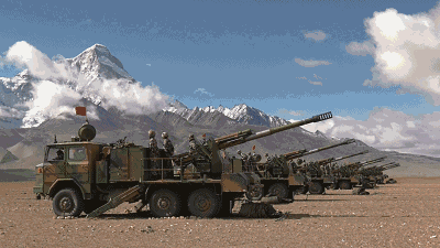 與此同時,解放軍正在高原上連續進行實兵實彈演習,各種彈藥潑水一樣地打出去