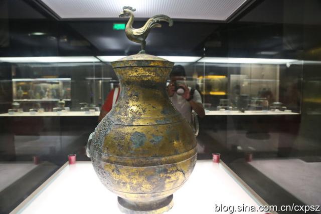 鎏金鳳鳥銅鐘,2003年西安市區漢墓出土,高78釐米,密封完好,鍾內還有26公斤的西漢美酒,打開時醇香撲鼻,被稱為“中華最古美酒” 圖自新浪