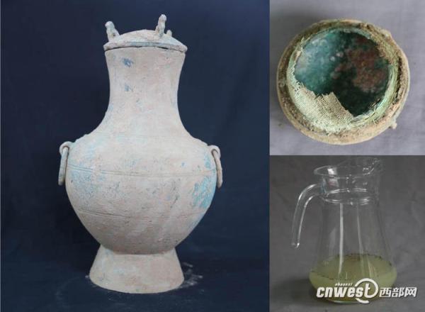 據項目負責人、陝西省考古研究院研究員許衞紅介紹,在這座墓中,考古工作者清理出了一件銅壺,內存總量約300毫升的近乳白色透明液體。在第一時間送至相關單位開展科技檢測後發現,液體中含有較高的羥脯氨酸、穀氨酸等氨基酸以及少量任二酸、月桂酸等脂肪酸等物質,屬於酒類物質。