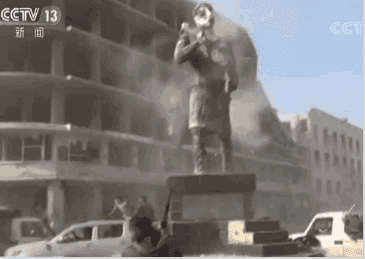 土耳其士兵佔領阿夫林後,槍擊並拉倒庫爾德神話英雄卡瓦(Kawa)
