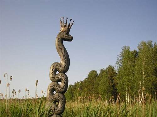 離被冰雪覆蓋的斯文託伊河岸不遠處,靠近波羅的海:有一處由立陶宛新“異教”組織洛姆瓦(Romuva)建造的名為Žemaitiu alka的聖地。聖地位於一個小丘頂上,由十二個站立着的木質人物組成。它們形態簡樸但傳達着一些特別的信息:兩個人物有彎曲的小角,其中一人頭部還裝飾着是一個能夠發射金屬射線的圓球。此外,還有一個人物的頭部只是簡單的八角形。人物的底座上雕刻着“Austėja”一詞,下面附有英文單詞“蜜蜂”。
