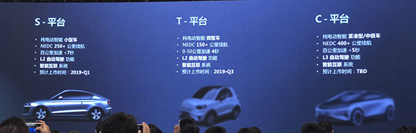 零跑汽車的定位是做純電動智能汽車。據介紹,零跑目前規劃了3大產品平台,分別是面向純電動智能小型車(A0級)的S平台;定位於微型車(A00級)的T平台,以及緊湊型/中型車的C級平台。