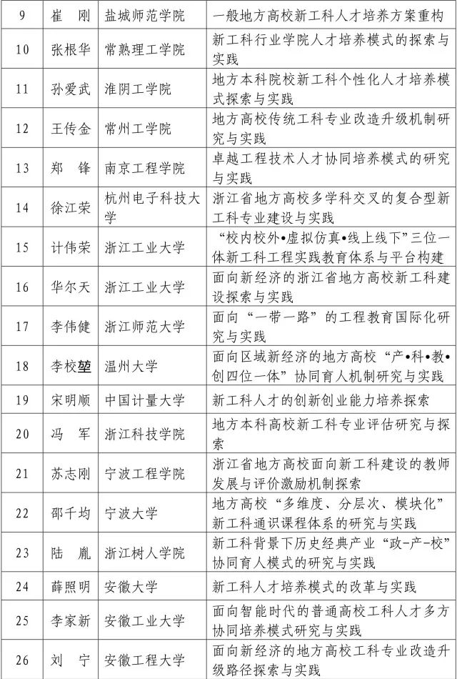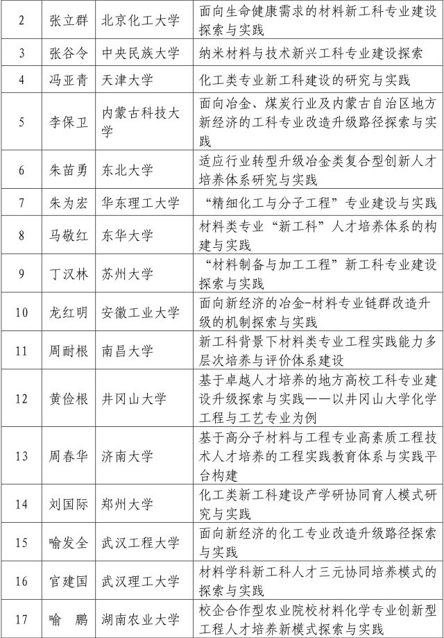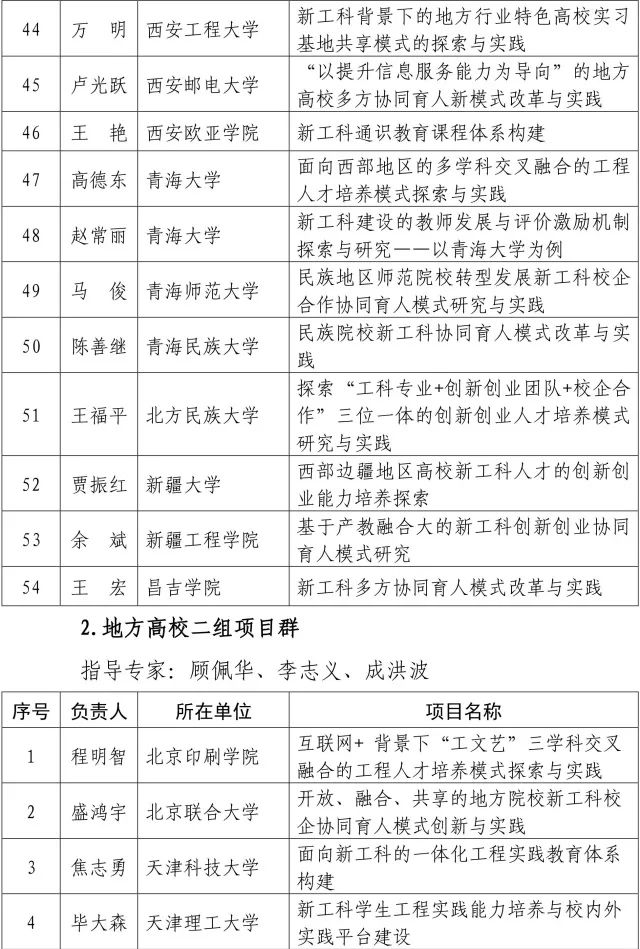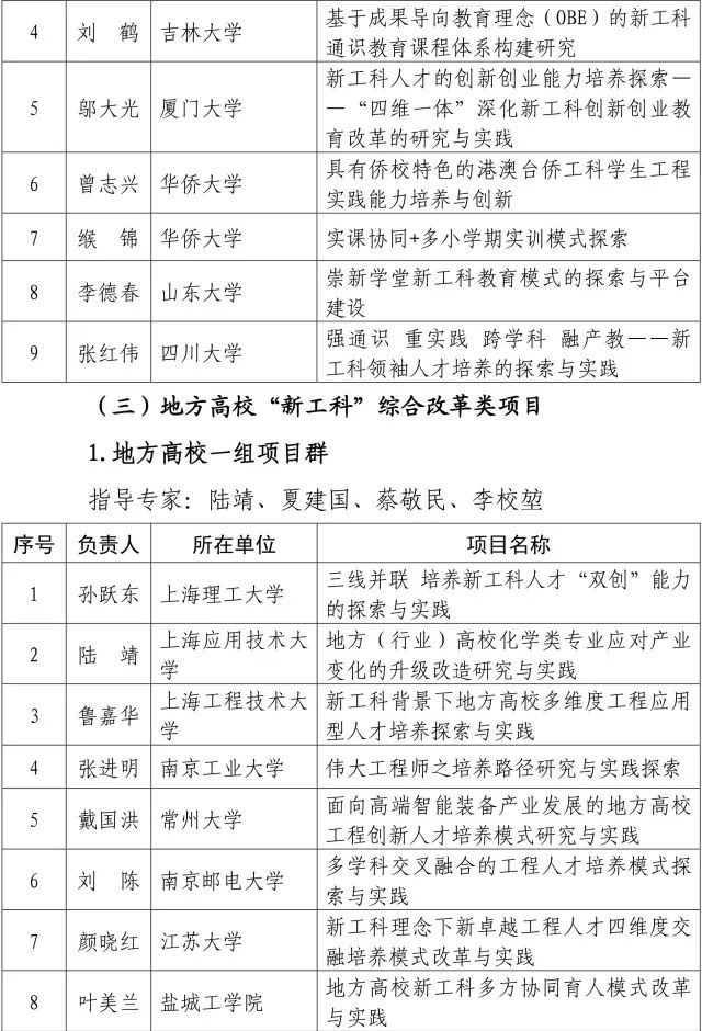 開展“新工科”建設是我部深入學習貫徹習近平新時代中國特色社會主義思想和黨的十九大精神,寫好高等教育“奮進之筆”,打好提升質量、推進公平、創新人才培養機制攻堅戰的重要舉措。根據《教育部辦公廳關於推薦新工科研究與實踐項目的通知》(教高廳函〔2017〕33號)精神,在有關方面擇優推薦的基礎上,經通訊評議、專家組評議及公示,我部決定認定612個項目為首批“新工科”研究與實踐項目,現予以公佈(名單見附件)。
