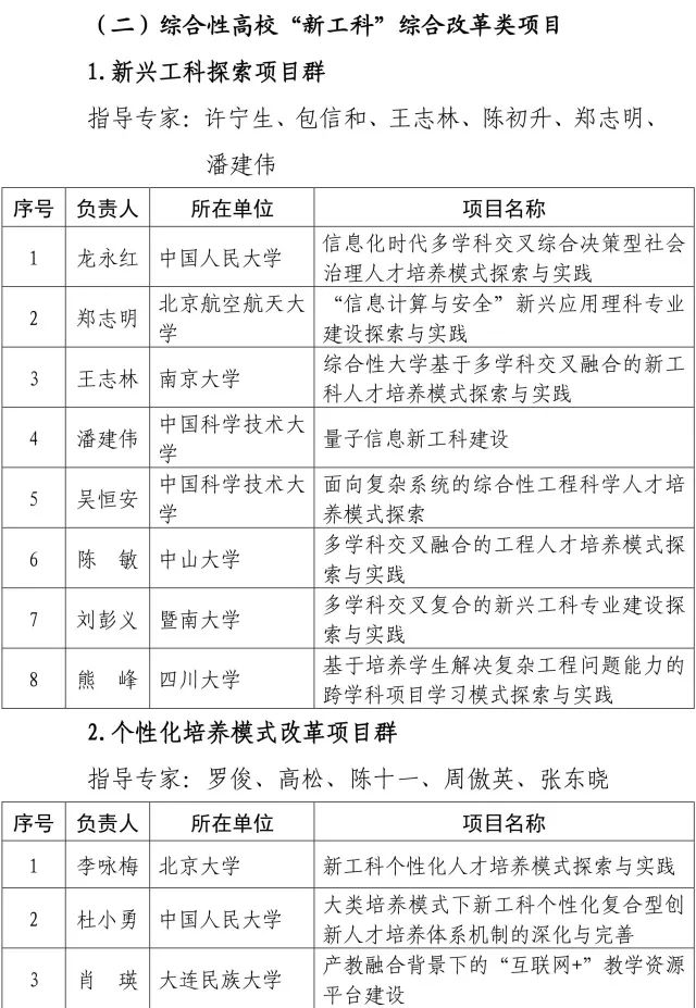 教育部本次公佈的新工科項目共包括兩類,其中新工科綜合改革類項目共有202個,新工科專業改革類項目共有410個。