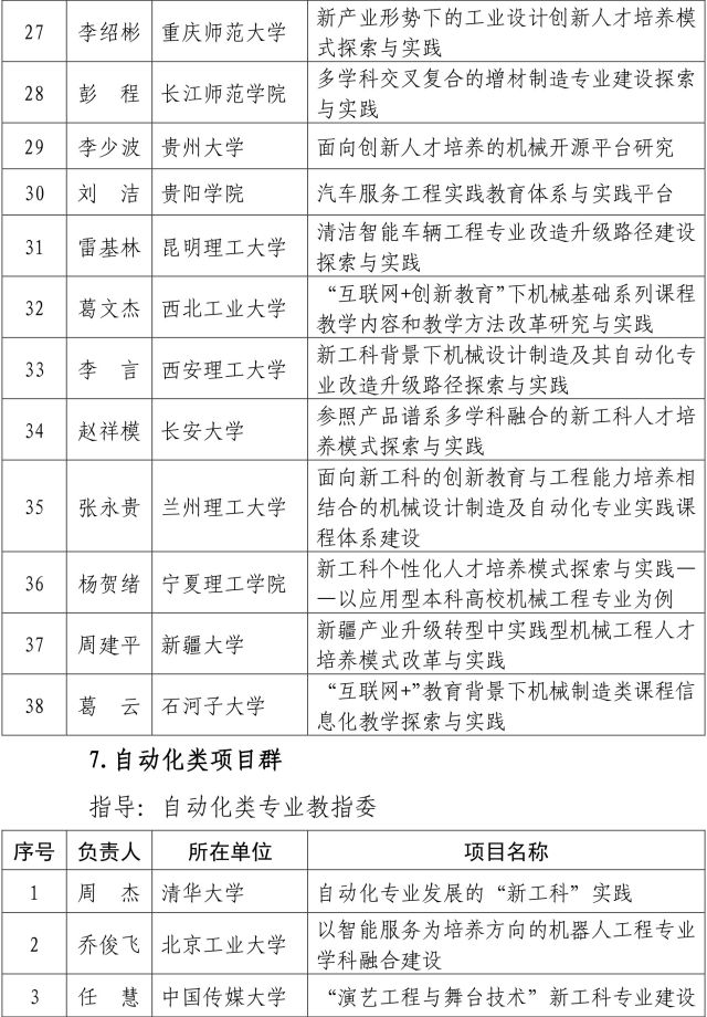三、以項目羣為平台加強交流合作。要充分發揮“新工科”研究與實踐項目羣的平台作用,定期組織項目交流、積極吸納社會資源、加大推進校際協同。“新工科”研究與實踐專家組、理工專業類教指委要發揮好“參謀部、諮詢團、指導組、推動隊”作用,加強對相關項目羣的指導、支持和服務,組織開展師資培訓、交流研討等,統籌推進本領域“新工科”建設。我部將適時通報表揚各地各高校“新工科”建設典型經驗做法,對於推進不力的項目將予以提醒或撤項。支持具備條件的高校設立“新工科”研究機構,深入開展理論研究與國際比較研究。