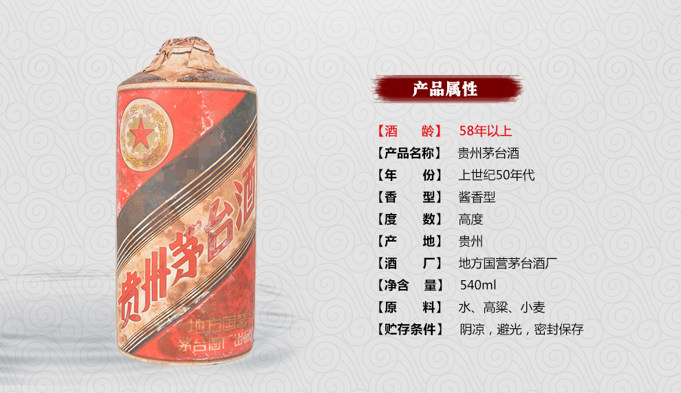 據中新網報道,在2011年5月的貴州省第二屆陳年茅台酒專場拍賣會上,一瓶上世紀50年代的地方國營五星商標茅台酒以86.5萬元成交。另外一瓶1986年整件地方國營五星商標茅台酒拍出54萬,帶有發票的1984年飛天商標茅台酒拍出61萬元。