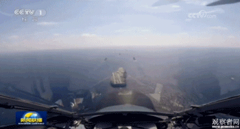 檢閲完海上編隊後,習近平前往檢閲艦駕駛室,透過舷窗觀看受閲編隊航行情況。艦艇編隊乘風破浪、浩浩蕩蕩。