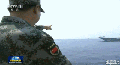 10時許,檢閲艦到達預定海域。海軍司令員沈金龍、政治委員秦生祥報告海上編隊集結完畢,習近平下達檢閲開始的命令。