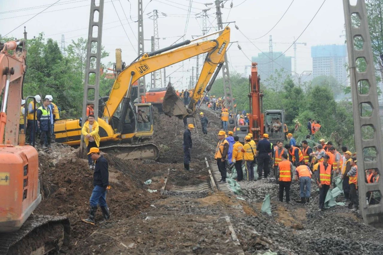 目前,鐵路部門已啓動應急預案,組織了工務、電務、供電500人的隊伍和大型機械搶修塌陷路基,武漢市市長萬勇也帶隊在現場組織指揮相關搶險工作,力爭儘快恢復運輸秩序。