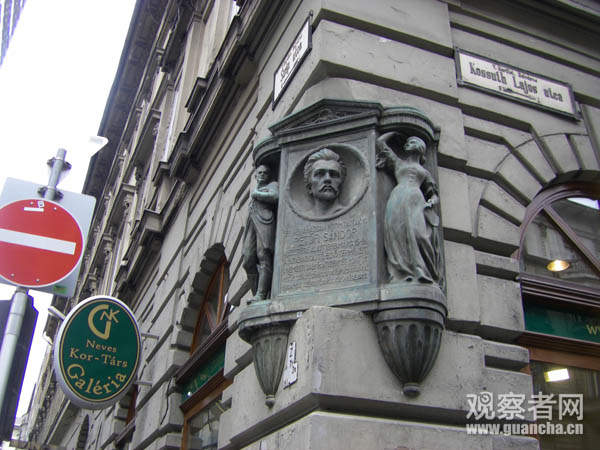 布達佩斯有很多裴多菲的雕像,這是在一個街角建築上的裴多菲小型雕塑。圖片來源:作者拍攝