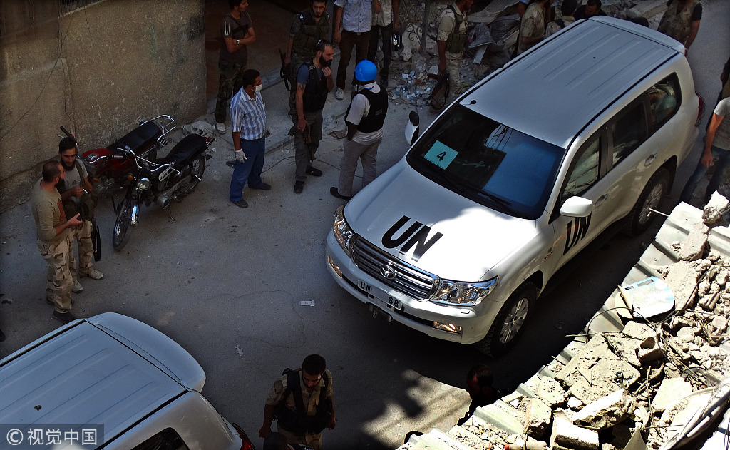 2013年8月28日,敍利亞大馬士革,聯合國武器專家就所謂化學武器襲擊展開調查 @視覺中國