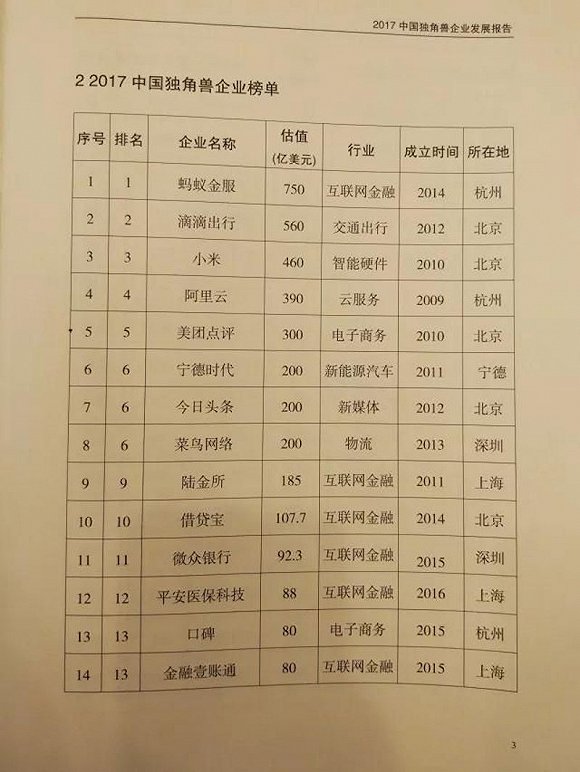 3月23日,由科技部旗下火炬中心、長城戰略諮詢和中關村管委會聯合發佈的《2017年中國獨角獸企業發展報告》顯示,企業估值超過10億美元的稱為“獨角獸”,超過100億美元的則是“超級獨角獸”。而根據榜單,中國符合條件的“超級獨角獸”僅有10家。