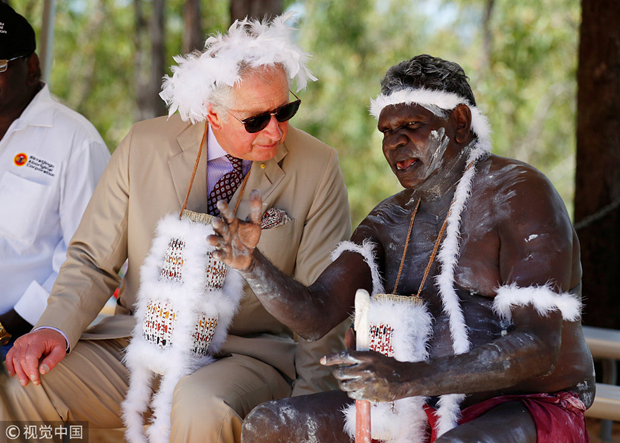 當地時間4月9日,澳大利亞紐蘭拜,英國查爾斯王子訪問當地土著部落 @視覺中國
