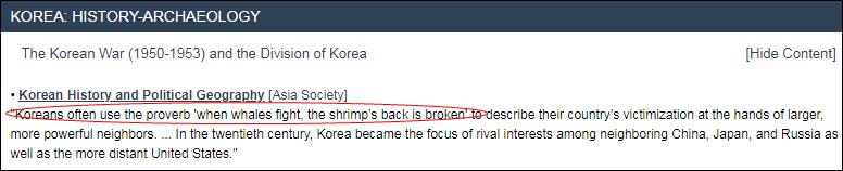 在哥倫比亞大學的網站,則更是用“神仙打架,小鬼遭殃”來形容韓國在近現代淪為各路強鄰交鋒戰場的尷尬處境。