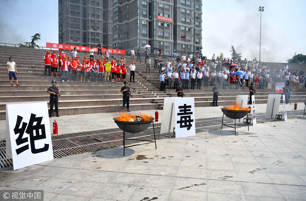 資料圖:警方公開銷燬繳獲的毒品@視覺中國